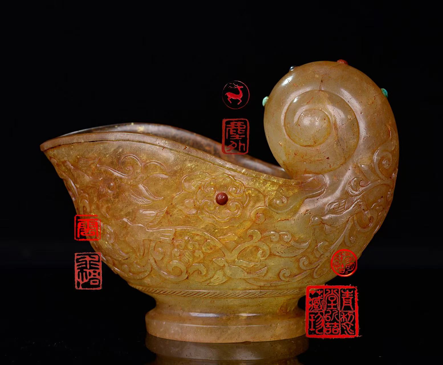 玛瑙的质地、颜色、纹带,及其经过精心琢磨后产生的奇特的艺术效果,再加上宗教上的加持,在大唐盛世的时代文化中,化身为一种珍宝。卢纶《栖岩寺隋文帝马脑盏歌》诗中的栖岩寺位于永济县外,盛唐时期名士多游于此。据《永济县志》上所裁“马脑盏”是隋文帝以外国所贡玛瑙盏施寺为供”。还有以“天宫宝器”“金骨”“阿修罗王掌中月”来形容这件玛瑙杯的珍贵。更因唐代文人多嗜酒,诗歌中岀现的玛瑙制品多为酒杯。钱起赋《玛瑙杯歌》诗咏之,而诗中“宁及琢磨当妙用,燕歌楚舞长用随”,正充分显现了玛瑙杯是贵族筵席用品的特点。玛瑙以玛瑙杯形式出现在诗歌中的还有白居易的“尖削琅𤣳笋,洼剜玛瑙罍”,元稹的“盘筵饶异味,音乐斥庸工。酒爱油衣浅,杯夸玛瑙烘”与杜甫的“内府殷红玛瑙碗,婕妤传诏才人索。碗赐将军拜舞归,轻纨细绮相追飞”。而杜甫《郑驸马宅宴洞中》“春酒杯浓琥珀薄,冰浆碗碧玛瑙寒”中的“玛瑙”既指碗是玛瑙做成的,又形容酒色寒碧如同玛瑙,显示了诗人巧妙运用器物特质转化成特殊意象。孟浩然的《襄阳公宅饮》与李商隐的《小园独酌》二诗中,皆以“龙须席”与“玛瑙杯”作为载体引入诗中,“龙须席”乃是龙须草编成的席子,为太子所用之物。由此可知“玛瑙杯”之珍贵。(庄洪海)